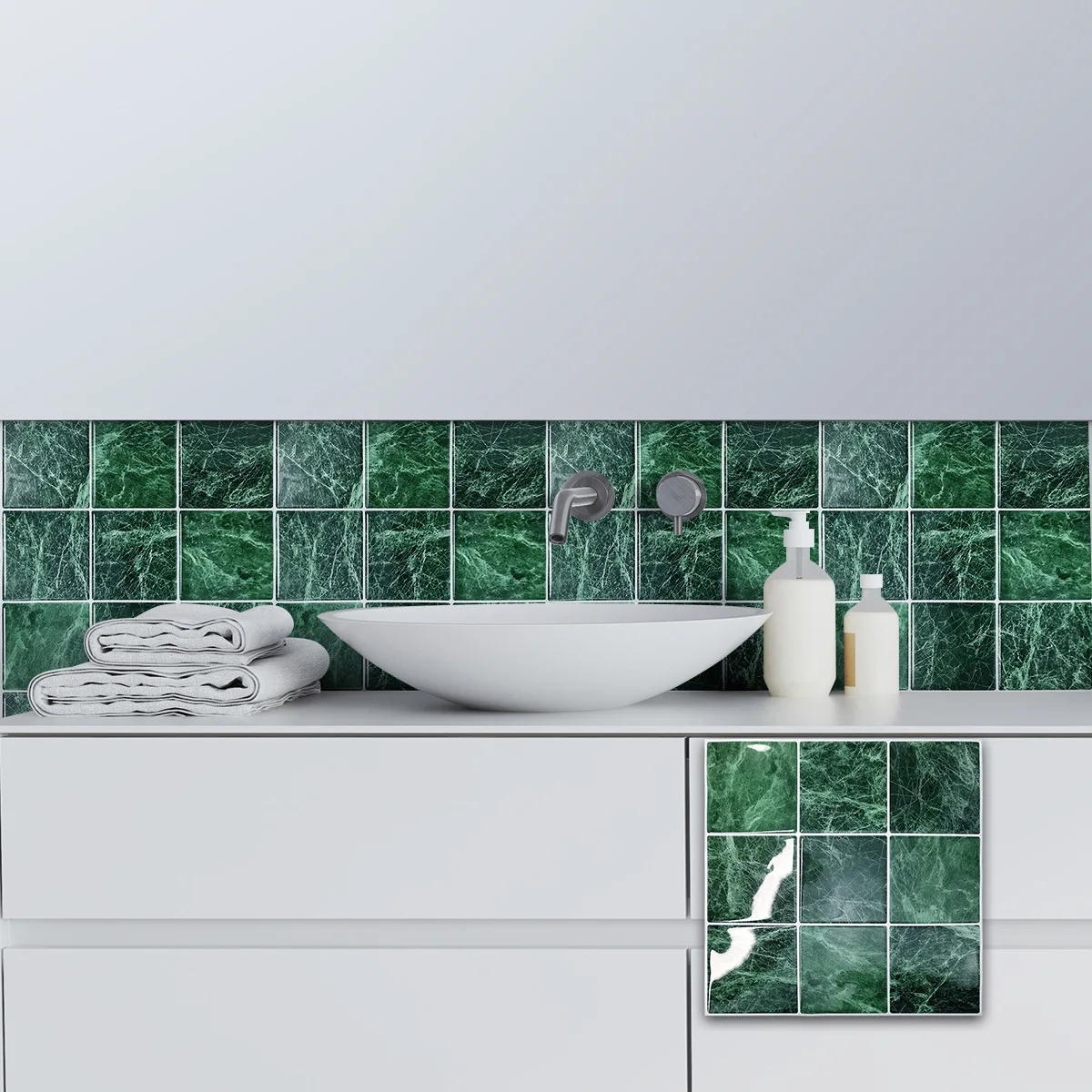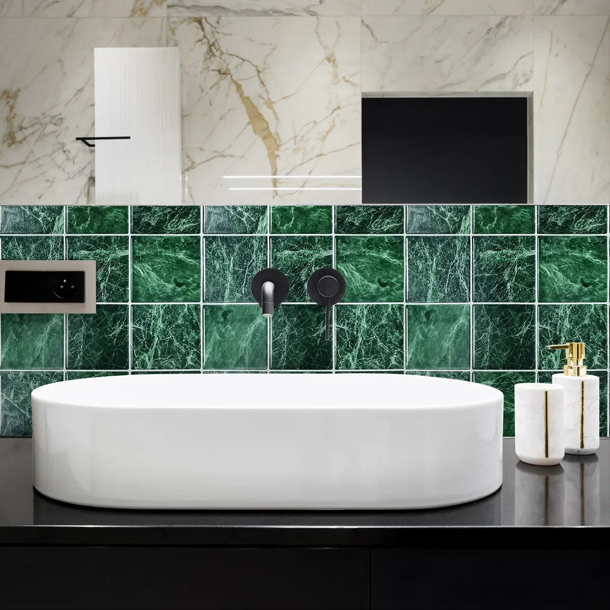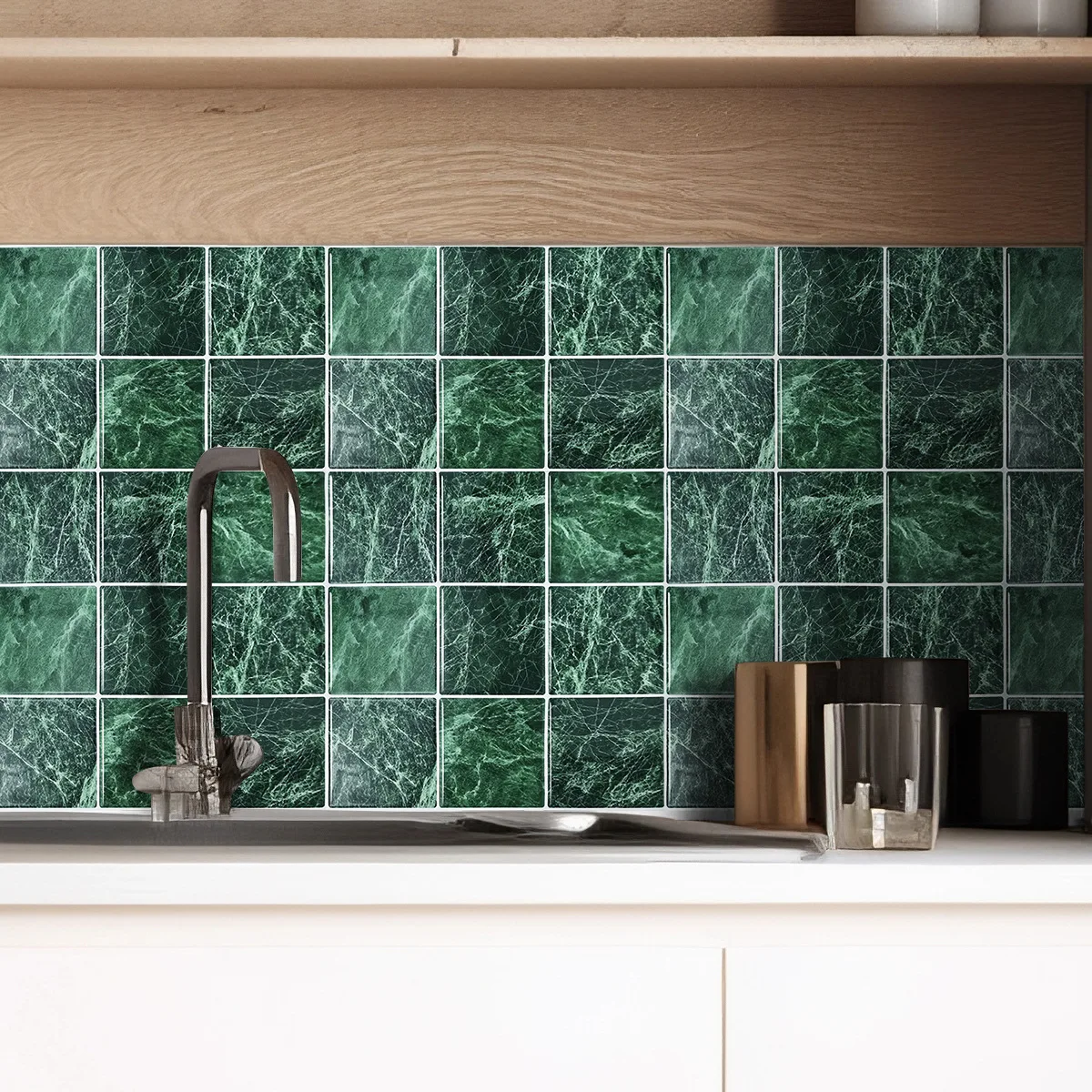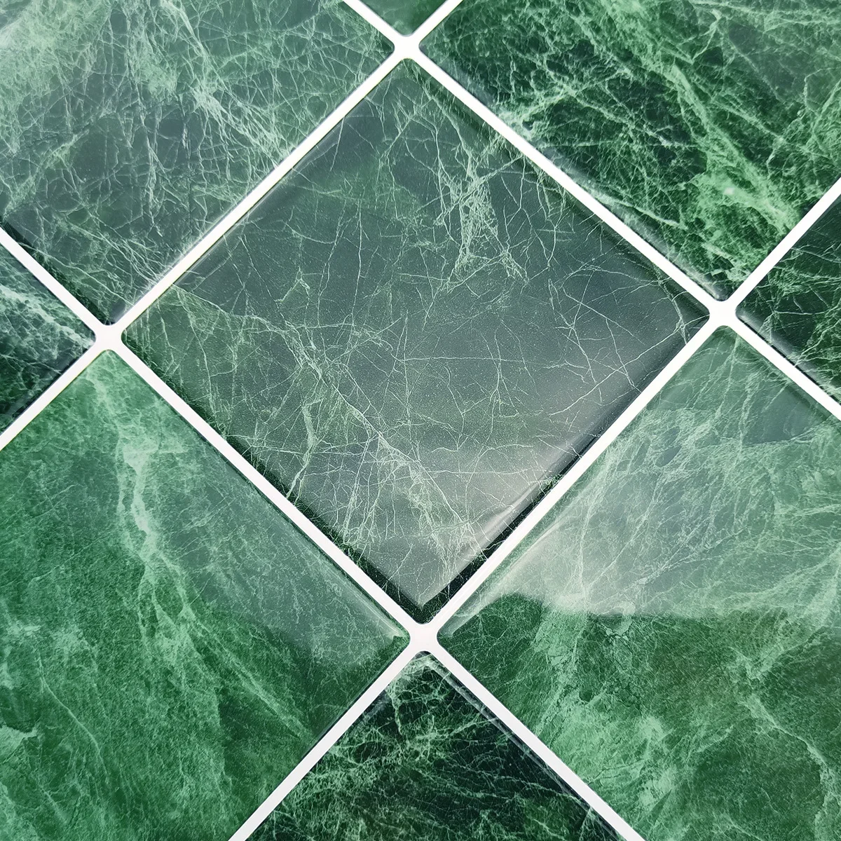 10 Pcs Dark Green Imitation Porcelain Tiles Kitchen Marble Backsplash Easy Peel and Stick Bedroom Wall Panel