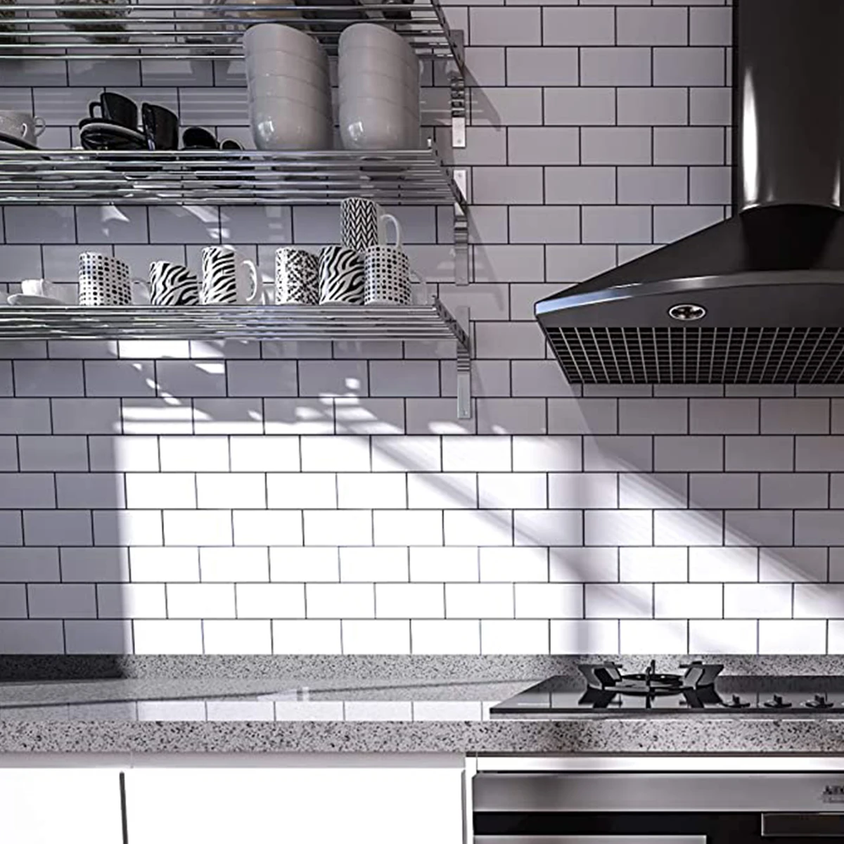The tiles can be easily installed directly over existing panels or smooth surface. Especially designed for kitchen backsplash and bathroom backsplash, the tiles are resistant to the heat of stove tops and the humidity of bathrooms.