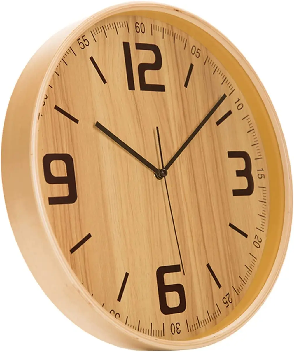 2024 New Wood Grain Plastic Wall Clock for L Quiet Fashion Nordic Round Silent Simple Custom Clock Manufacturer