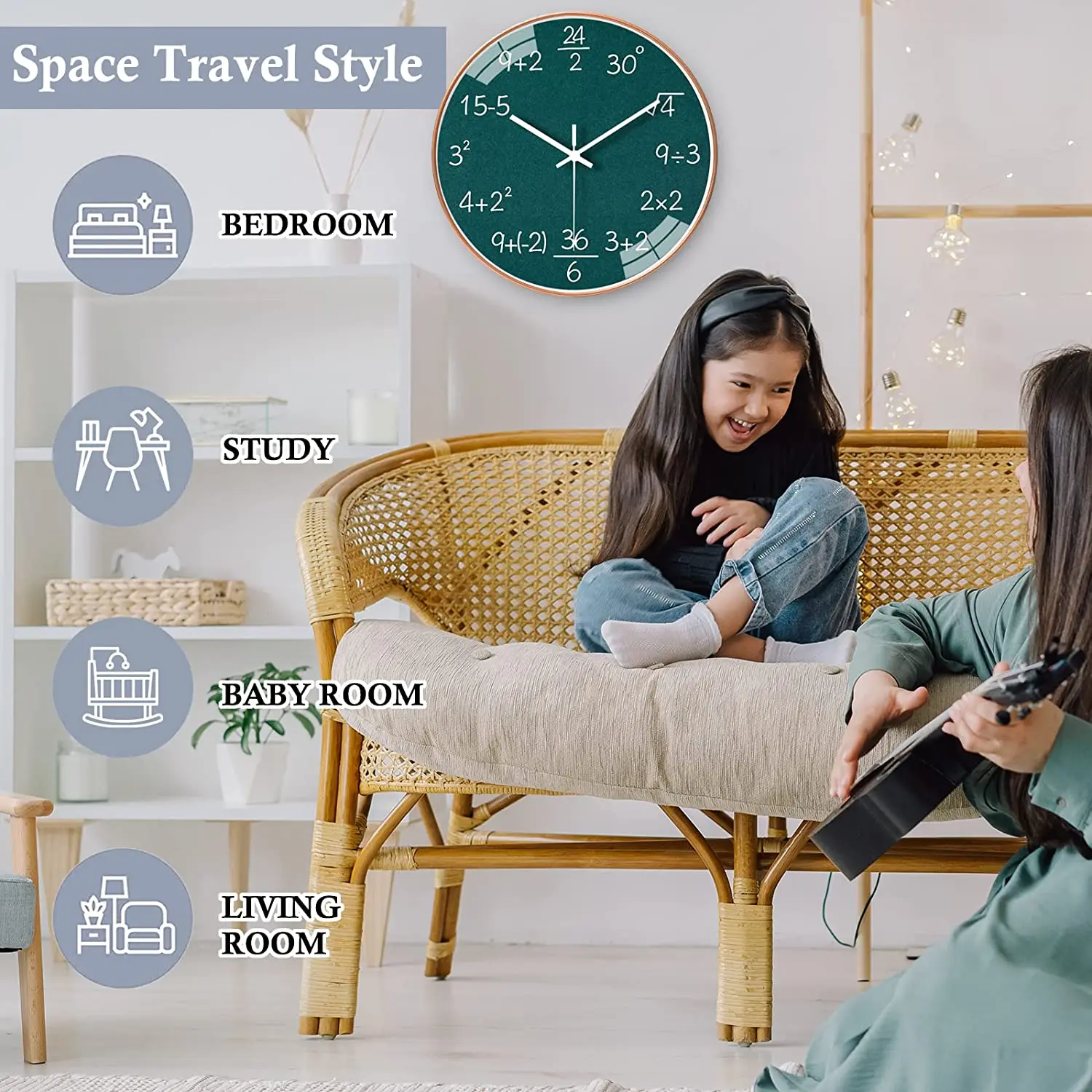 12 Inch Green Wall Clock Silent Fashion Gift Round Math Quality Quartz Plastic Clock for Home Kitchen Office Classroom School