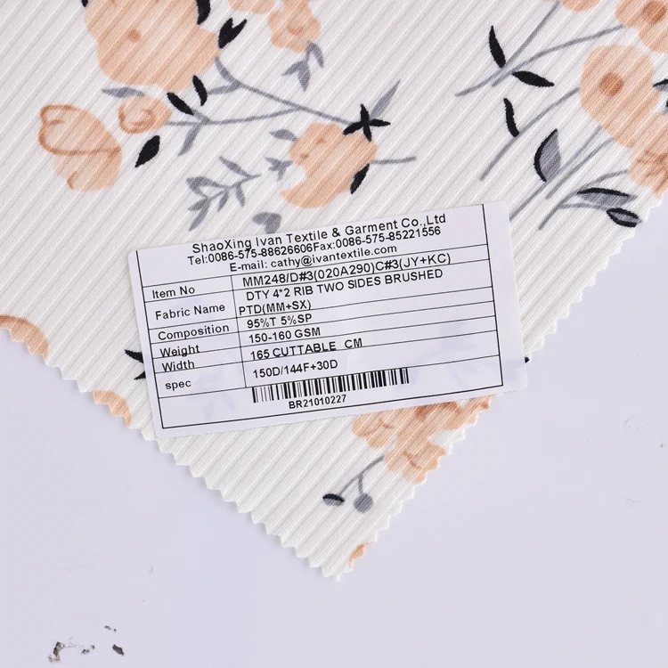 Article name | 2023 New designed good quality flower printed brushed 4x2 rib fabric for women dress | ||||