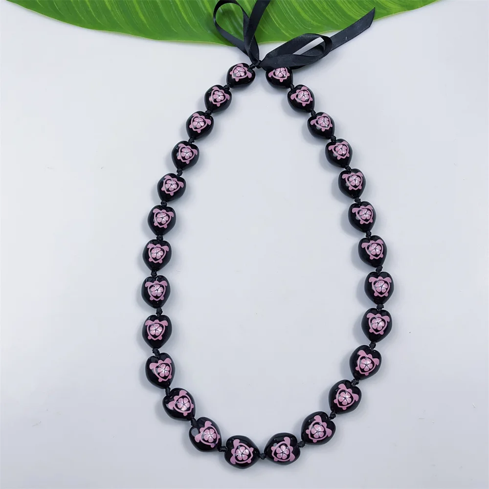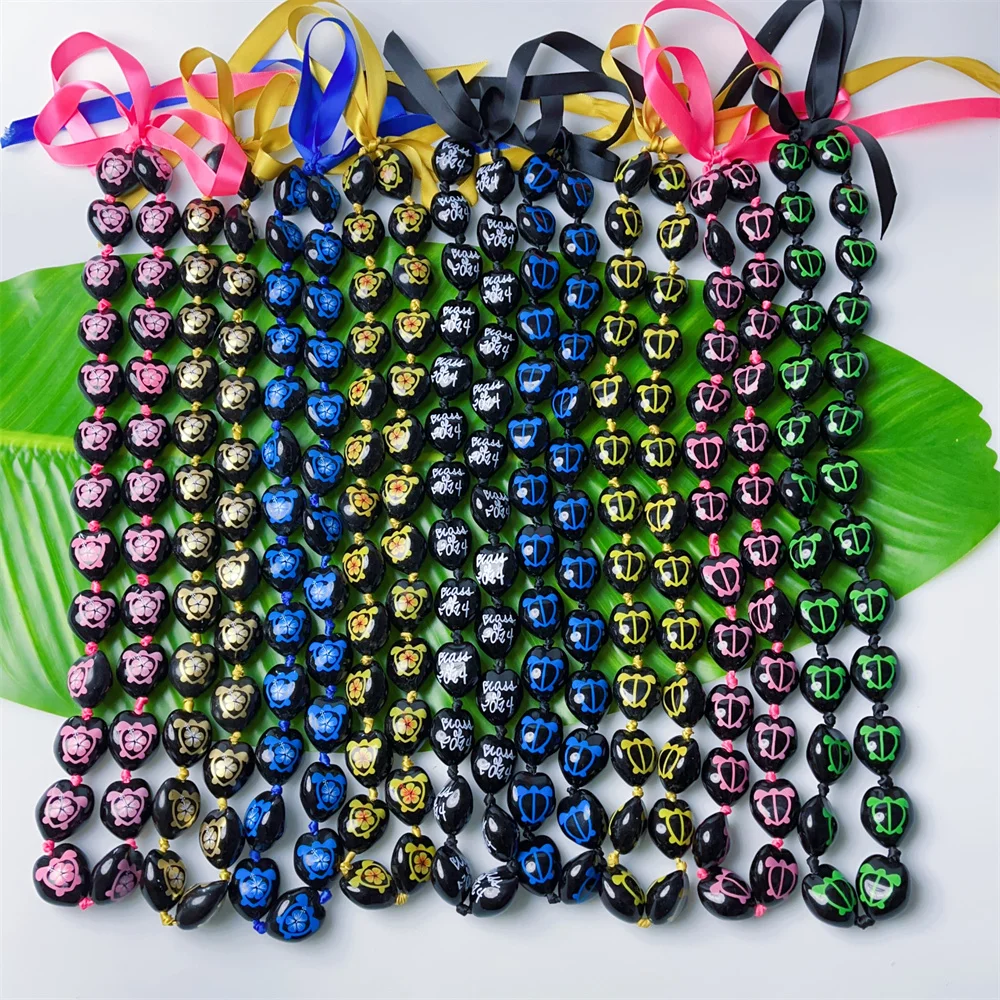 2025 Graduation Acrylic Kukui Nut Lei Printed Tortoise w Hibiscus Chains DIY Beads Necklace for School Parties