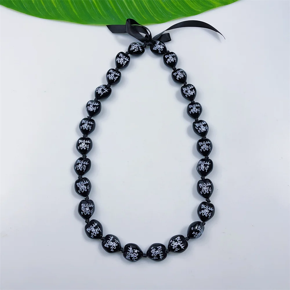 2025 Graduation Kukui Nut Printed Necklace w Hibiscus Chains DIY Beads Fashion Jewellery for School Parties