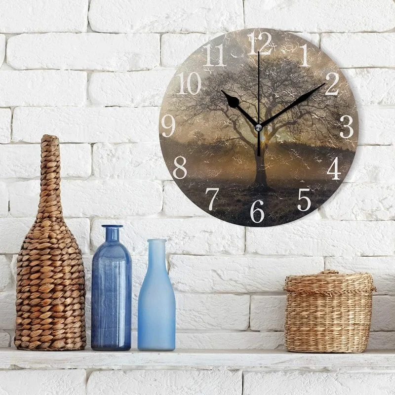 2024 New Modern Nordic Minimalist Mdf Wood Tree Wall Clock for Living Round Silent Simple Custom Clock Decoration