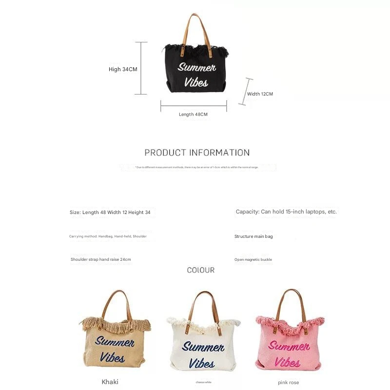 2025 Summer Women's Beach Tote Bags with Embroidered Reusable Sustainable Friendly Large Capacity Handbag Tassel Canvas Tote