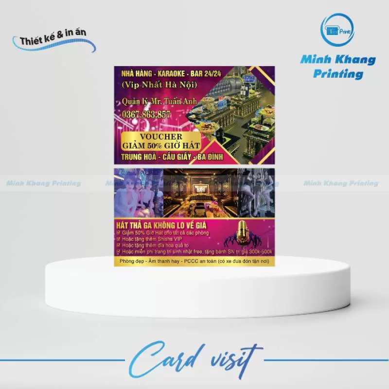 Nếu bạn đang có nhu cầu in Card visit cho quán Karaoke của mình, hãy nhanh chóng liên hệ với Minh Khang để được bộ phận nhân viên hỗ trợ tư vấn, giải đáp mọi thắc mắc của bạn nhé.