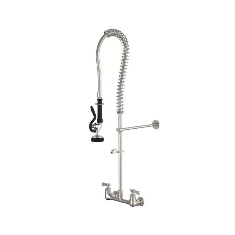 Approved Wall-Mounted Double-Handle Commercial Kitchen Faucet with Pull Down Sprayer for Restaurant Faucet