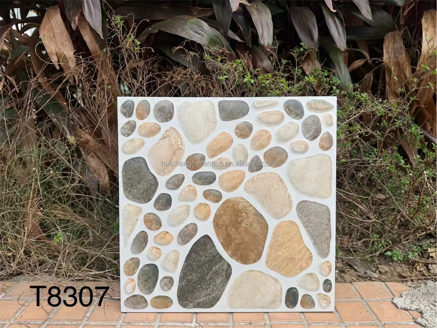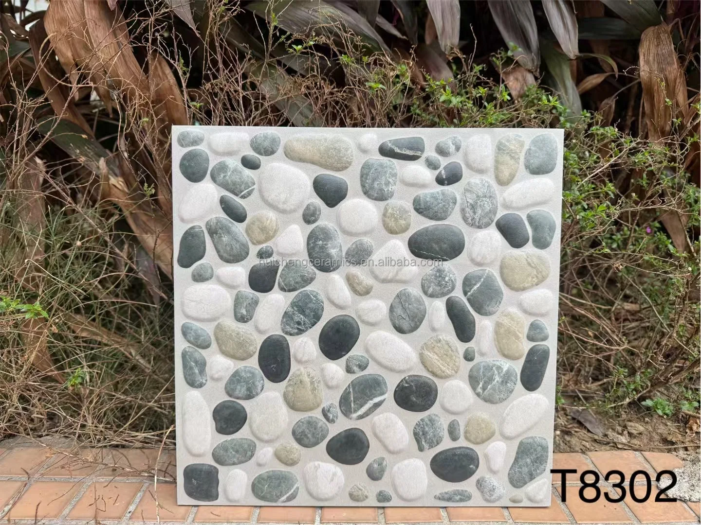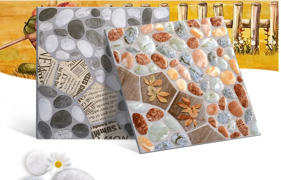 3D Inkjet 300x300mm Non slip Look Cobblestone Tile for Outside Garden Floor Tile
