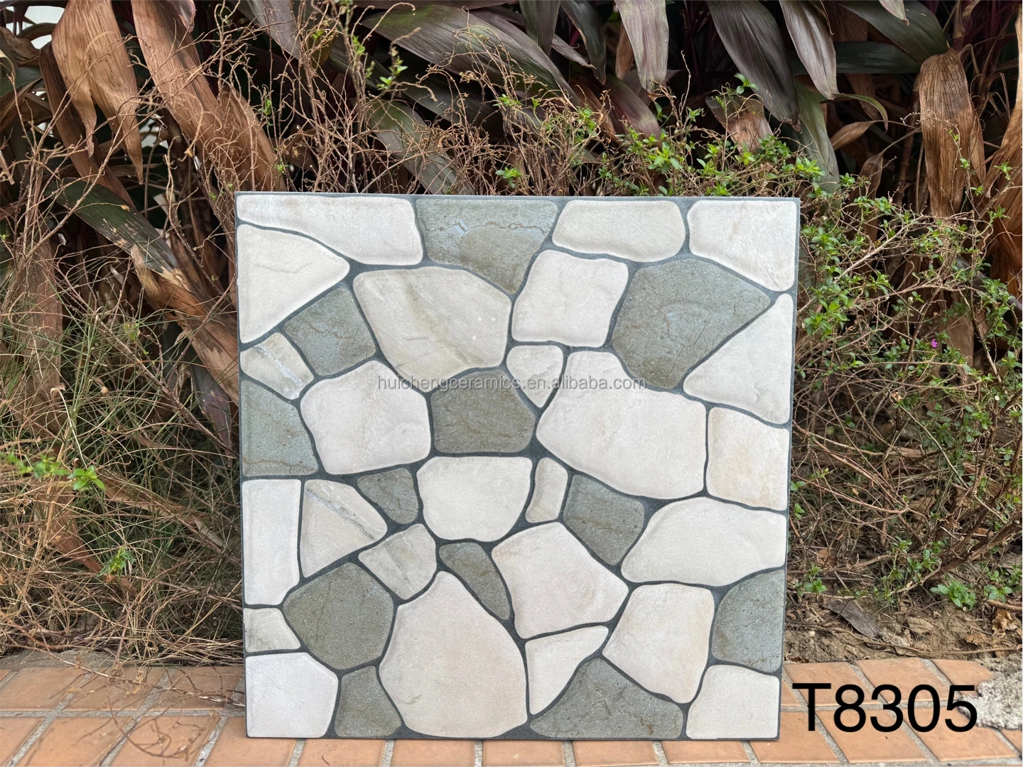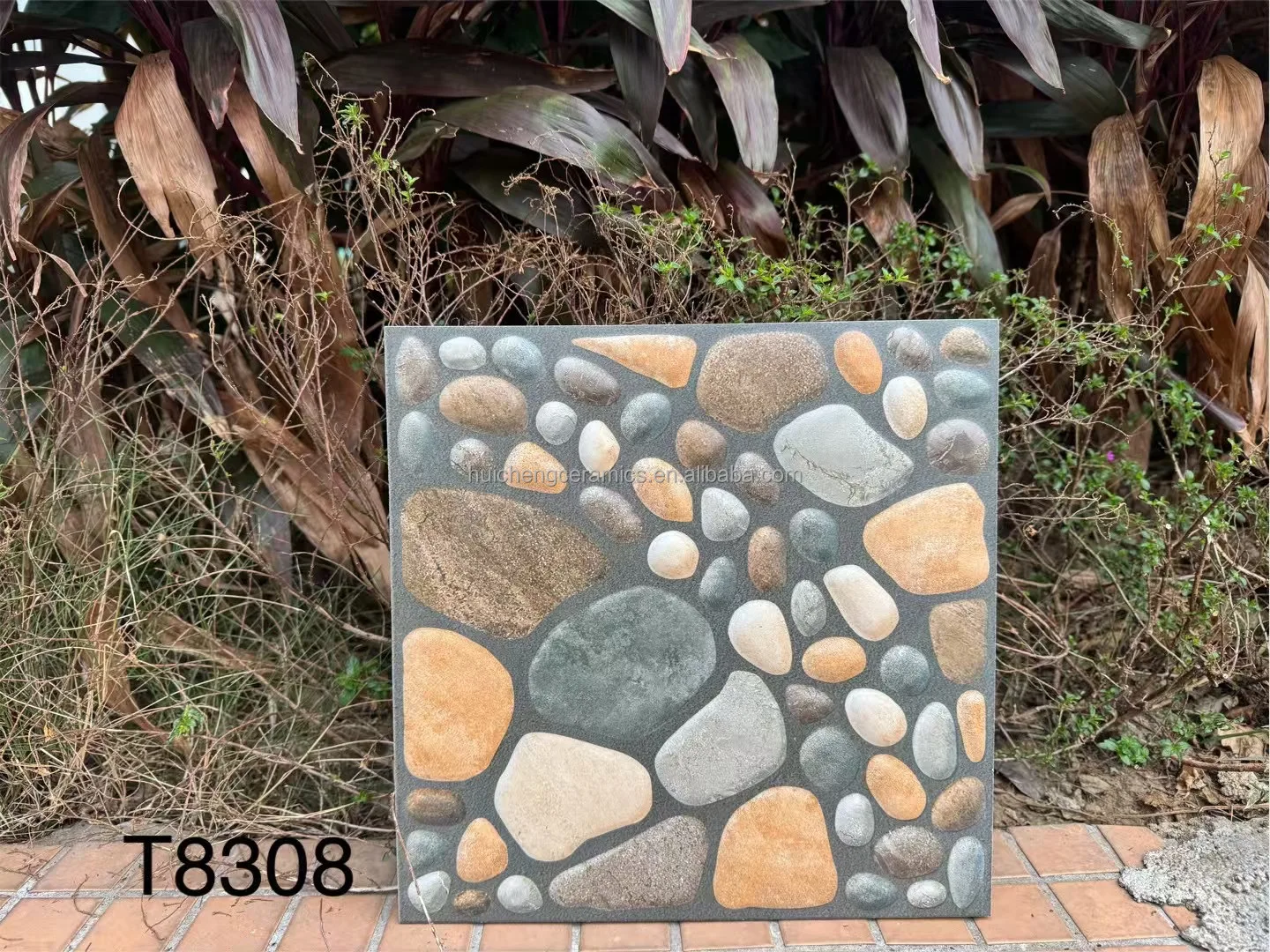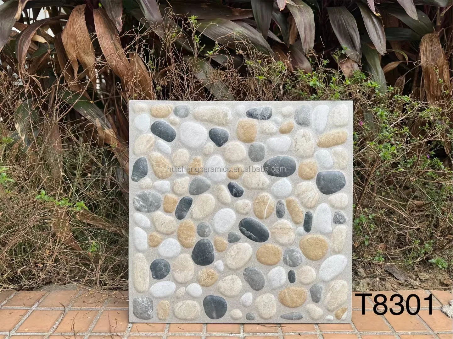 3D Inkjet 300x300mm Non slip Look Cobblestone Tile for Outside Garden Floor Tile