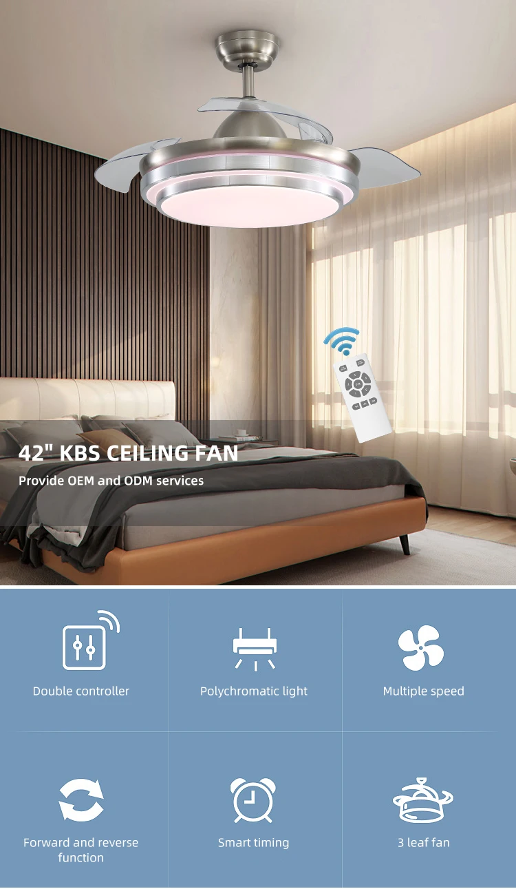 42 Inch Retractable Fan Lamp 3 Blade Invisible High Quality Modern Bldc Ceiling Fan With Light and Remote Control