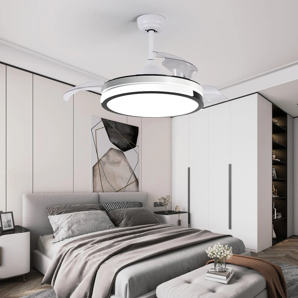 Bluetooth Retractable Ceilling Fan 42 Inch 3 ABS Transparency Blade Ceilling Fan With Light and Remote Control