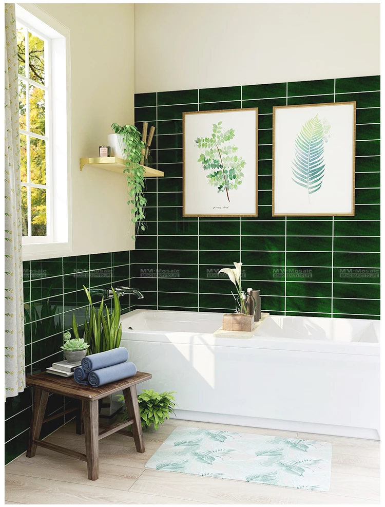 Gạch Mosaic trang trí cho phòng tắm nhà bếp 48x110mm màu xanh lá cây ZBE1602