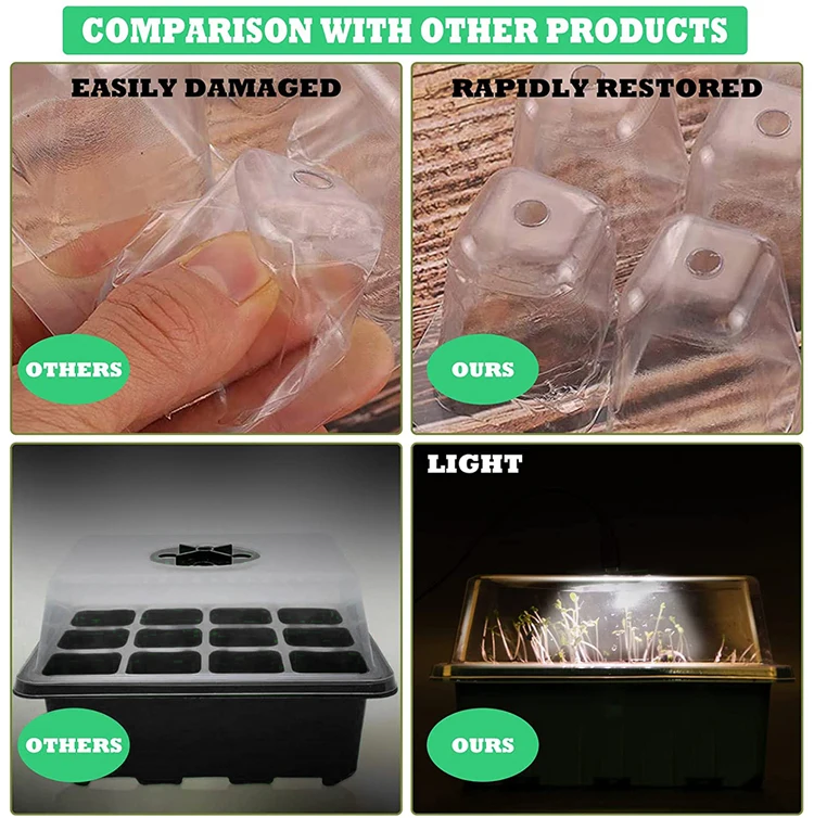 5Pack 12 Holes Small Propagator LED Grow Light Seeding Star Kit With Degradable Grow Bag
