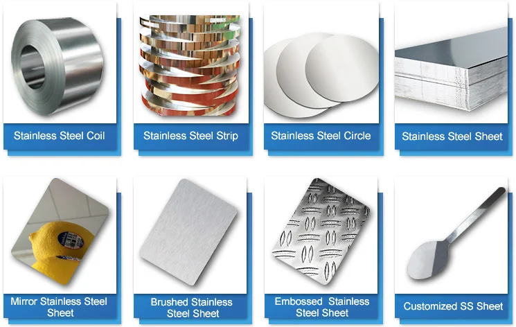 Surface | 2B, BA, Brushed, HL, Mirror, Satin, Matt, Hairline, No.4, No.8, 8K, NO. 1, Checkered, Embossed |