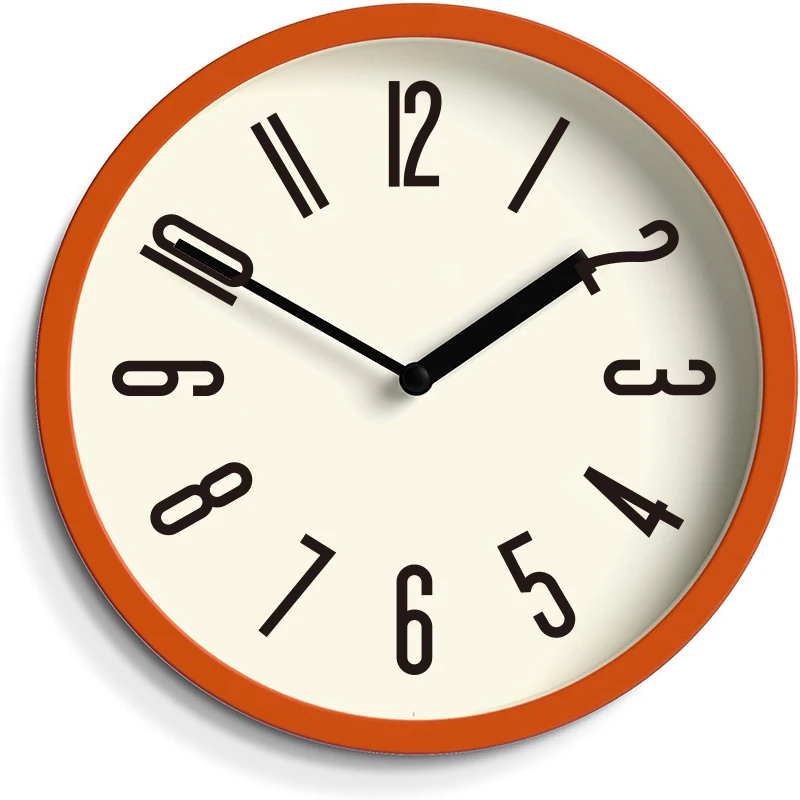 8 Inch Unique Creativity Fashion Orange Small Silent Modern Custom Wall Clock for Living Room Decor