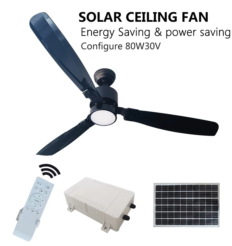 80W30V Rechargeable Solar Powered Ceiling Fan Solar Variable Frequency Fan Light with Charging Board LED Ceiling Fan Light