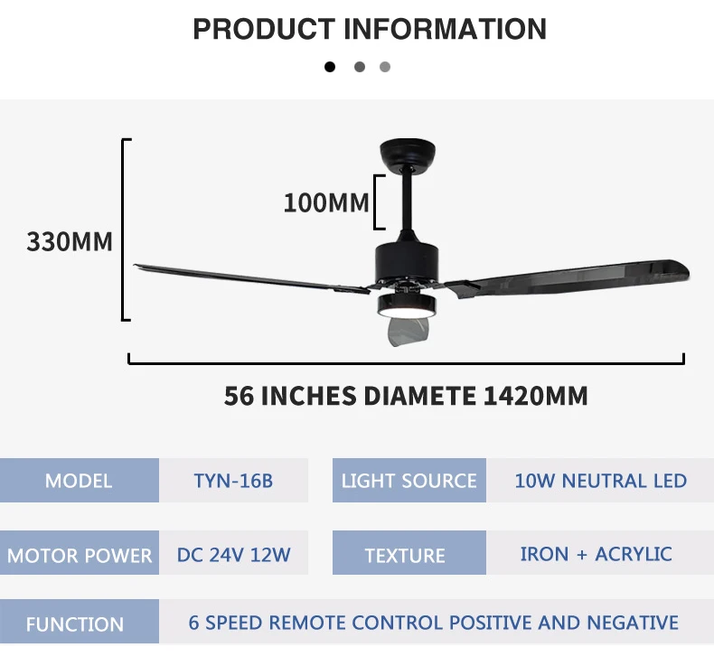 Fan lamp dimensions | 142*33cm/56 inch |