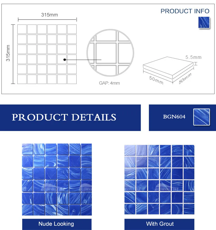 “Bluwhale Tile” is specialized in supplying wide range of high quality mosaic tiles products for swimming pools, spa center, ponds and wet areas, we welcome all project orders, whether you selecting our current product or seeking engineering assistance, your requirement can be customized. With over 10 years experience in mosaic tile production, thoughtful customer service and competitive price, we have cooperated with builders, contractors and designers to create many swimming pool projects worldwide.