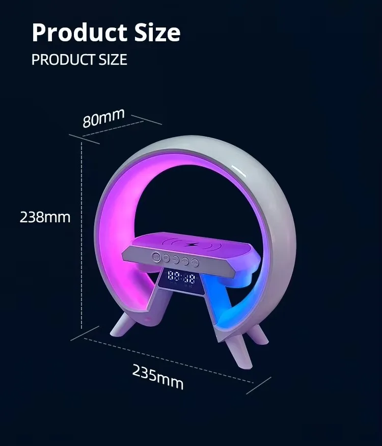Multifunction Alarm Clock Support Fast Wireless Charging LED Atmosphere Lights BT 5.3 Wireless G Speaker