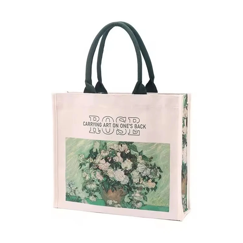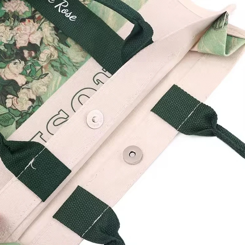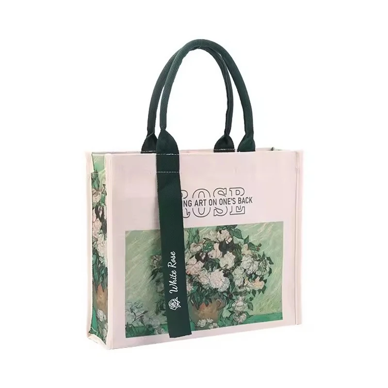 Factory Oil Painting Canvas Tote Bag Large Capacity Fashionable Art Women's Handbag Bag with Printed Logo