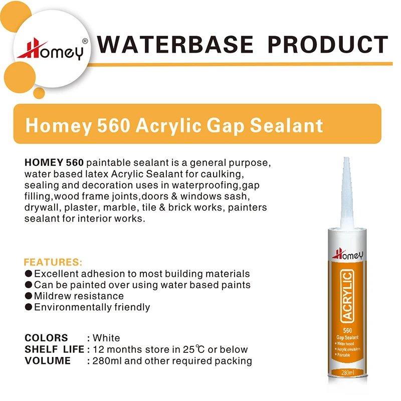 Homey 590 280ml Acrylic White Paintable Silicone Sealer Main Raw Material for Packing