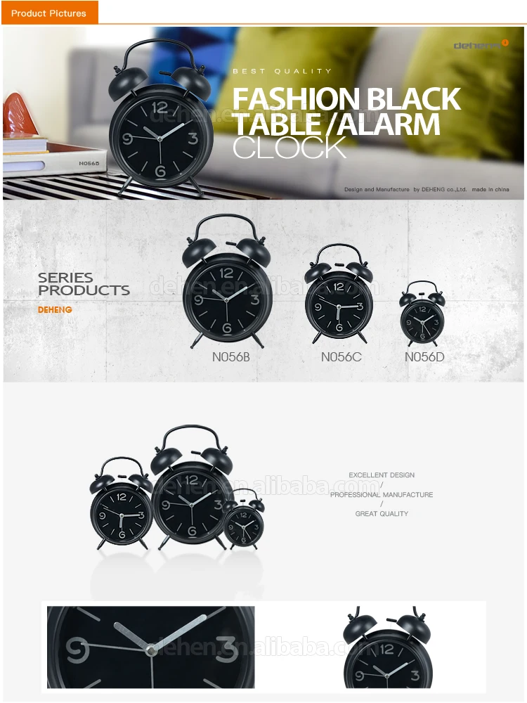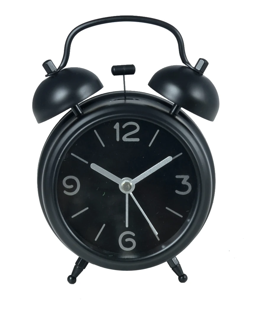 Fancy Design Twin Bell Custom Alarm Clock Black Metal Desk Clocks for Study Room
