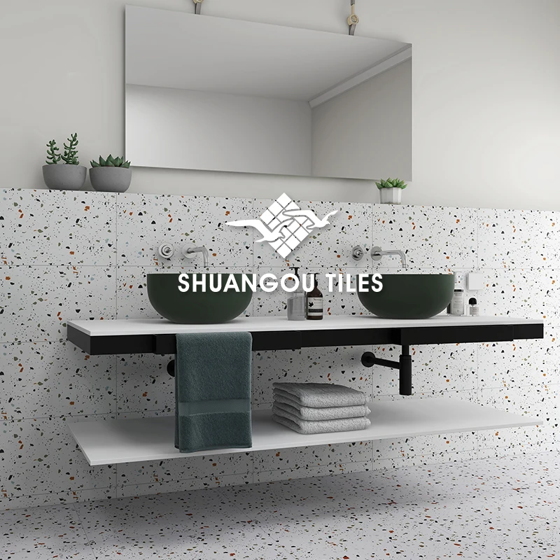 Foshan Factory 12x24 Inch Terrazzo Design Grey Beige Colourful Bathroom Living Room Floor Wall Decor Ceramic Tile