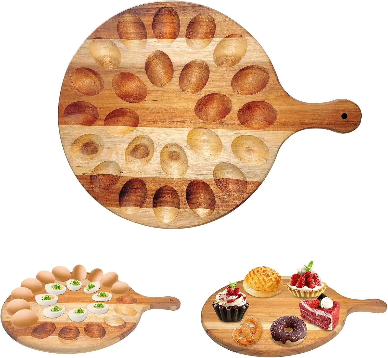 * \uD83C\uDF81Convenient multi-purpose design - Not just an egg tray, turn this wooden tray upside down and you'll find its multi-purpose side - as a cheese or charcoal plate, or even for pizza and desserts. A practical choice for any kitchen, this tray will simplify your service needs without taking up too much space.