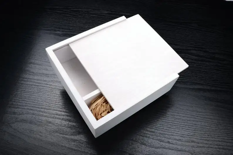 Wood Photo , Wedding Gift, Keepsake Boxes, White Washed, wooden box with slide lid |