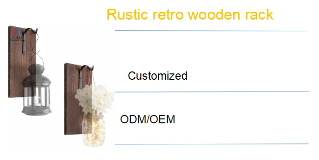 JUNJI Wooden Set of 2 Lighted Country Rustic Mason Jar Wall Hanging Mason Jar Sconces with LED Fairy Lights