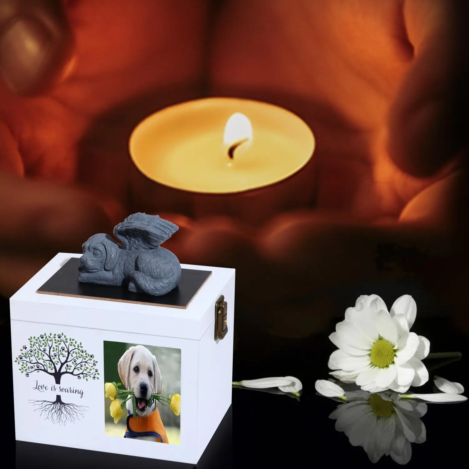 X Large Luxury Wooden Urn for Pet Ashes Handmade Cat or Dog Memorial Casket with Photo Frame Bamboo Material