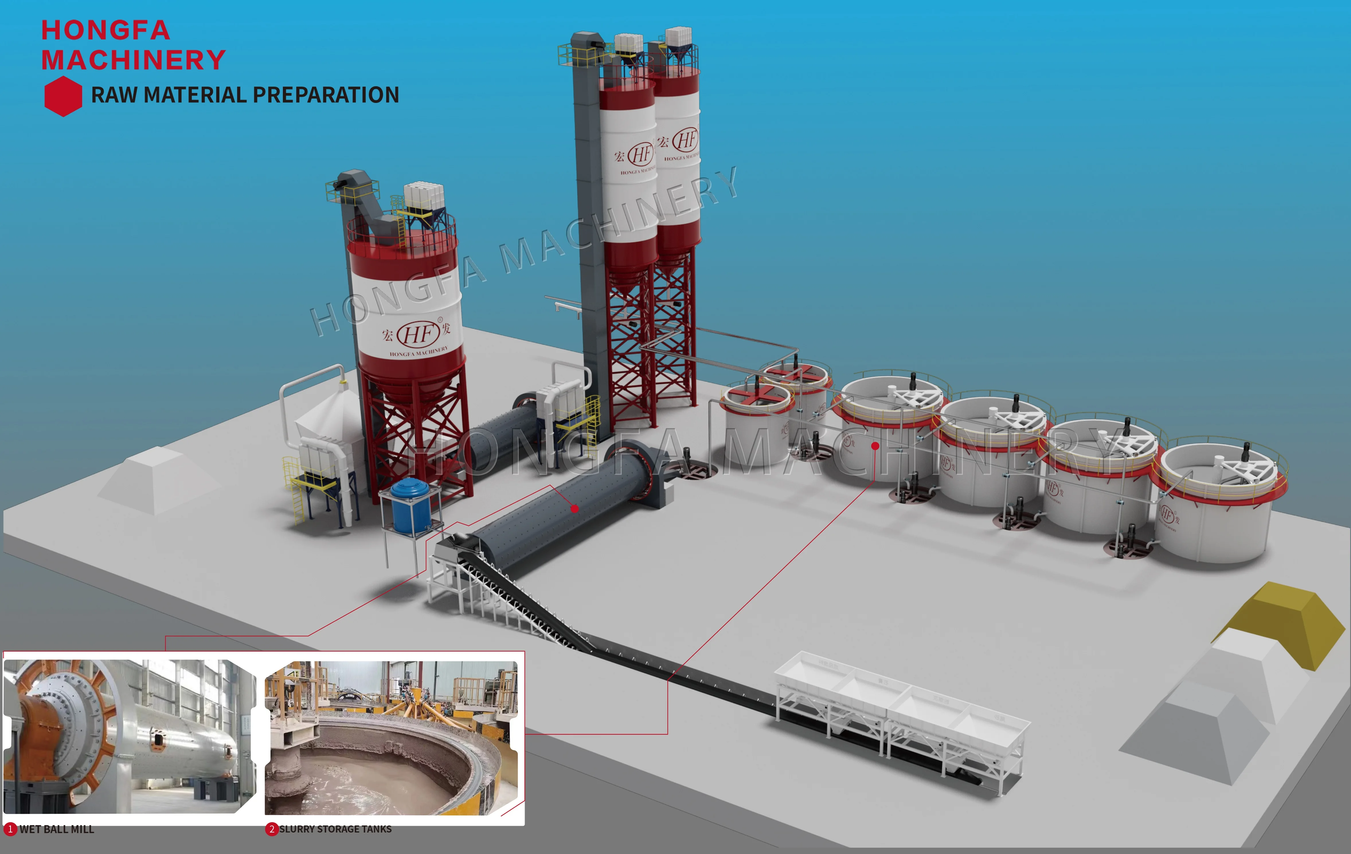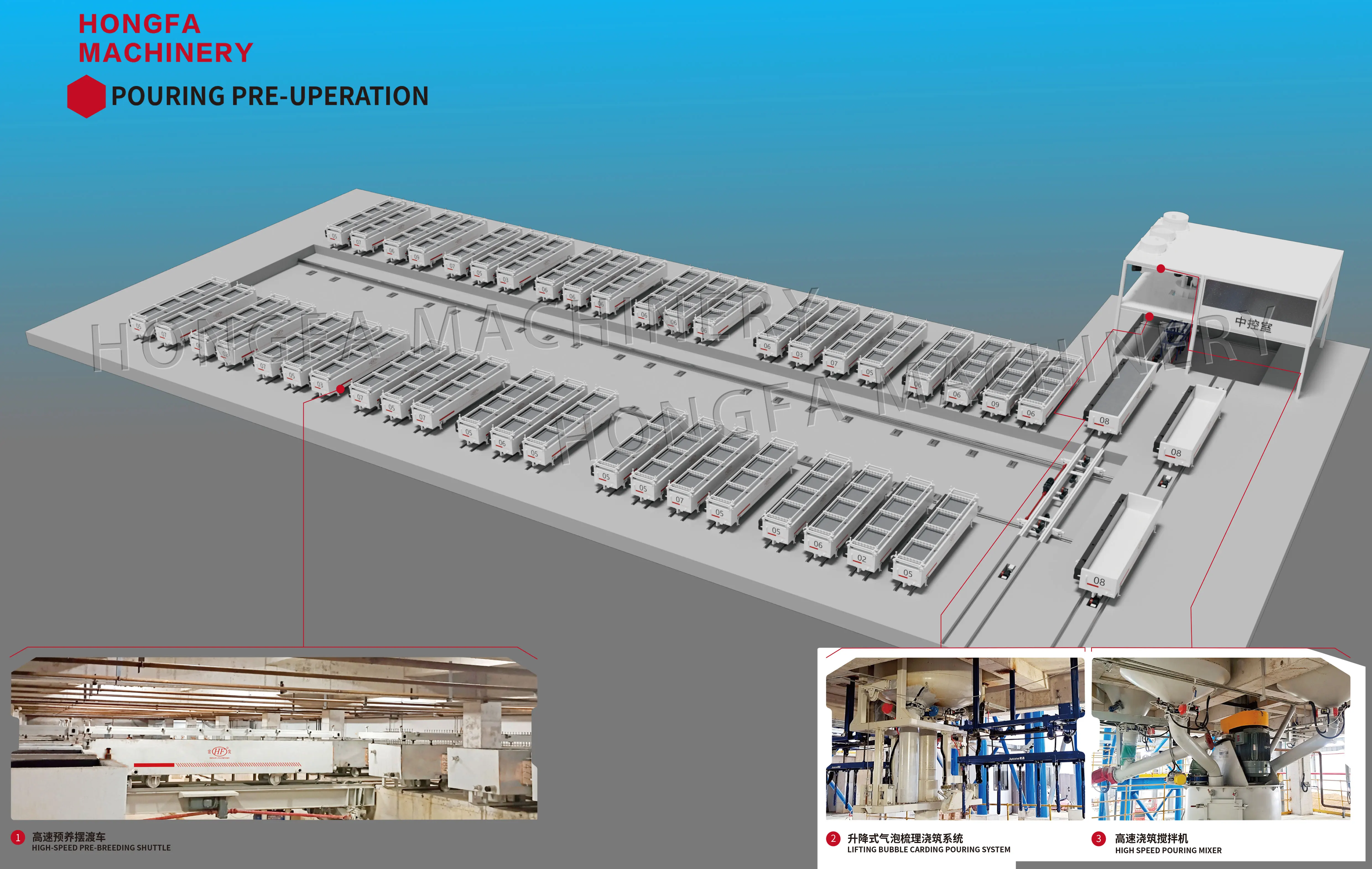 2. After distributing, feed raw material into pouring mixer to make slurry.