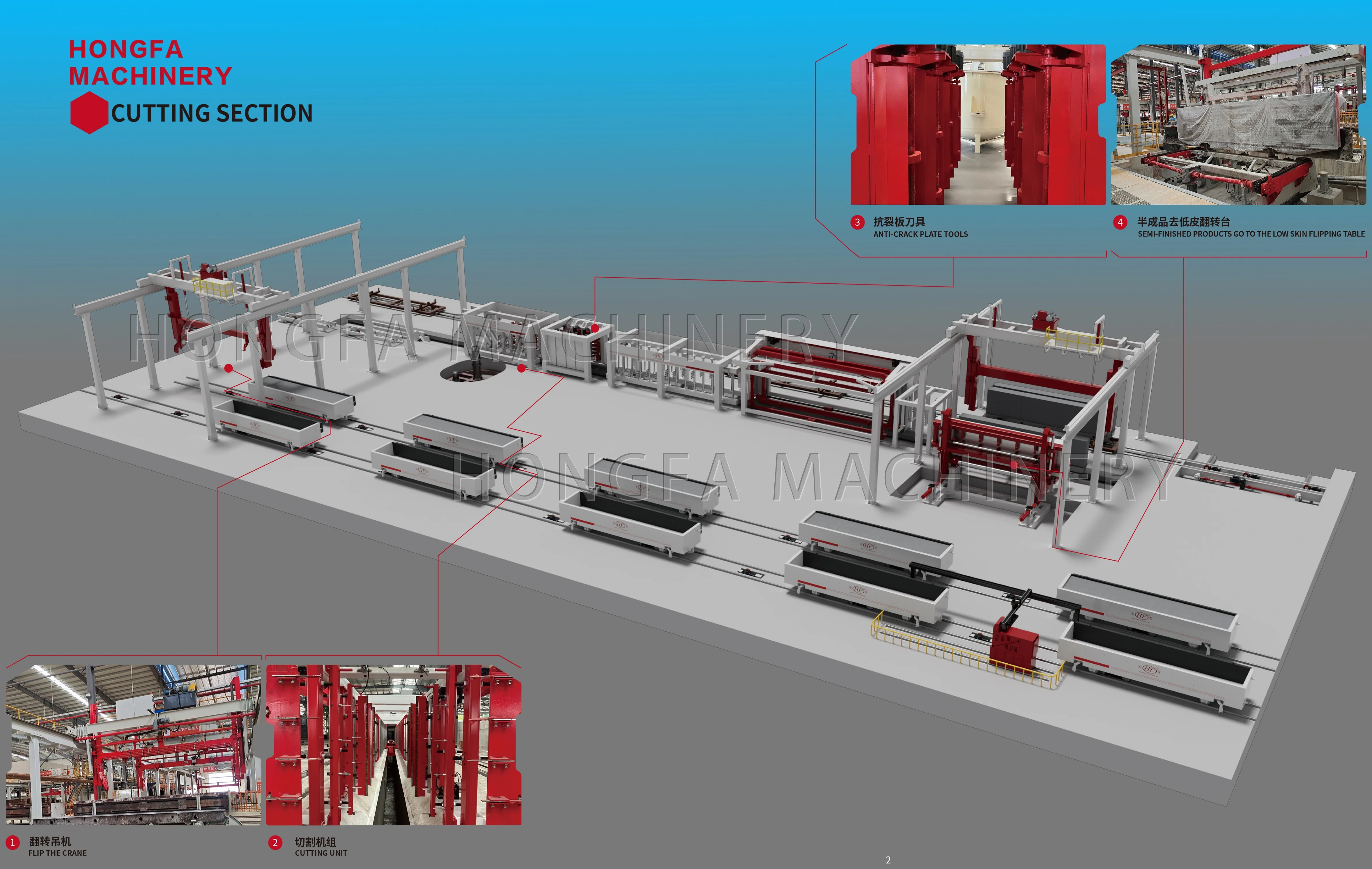 15. After cutting, the block is hanged to curing carts with side plate by semi-finished product hoister;
