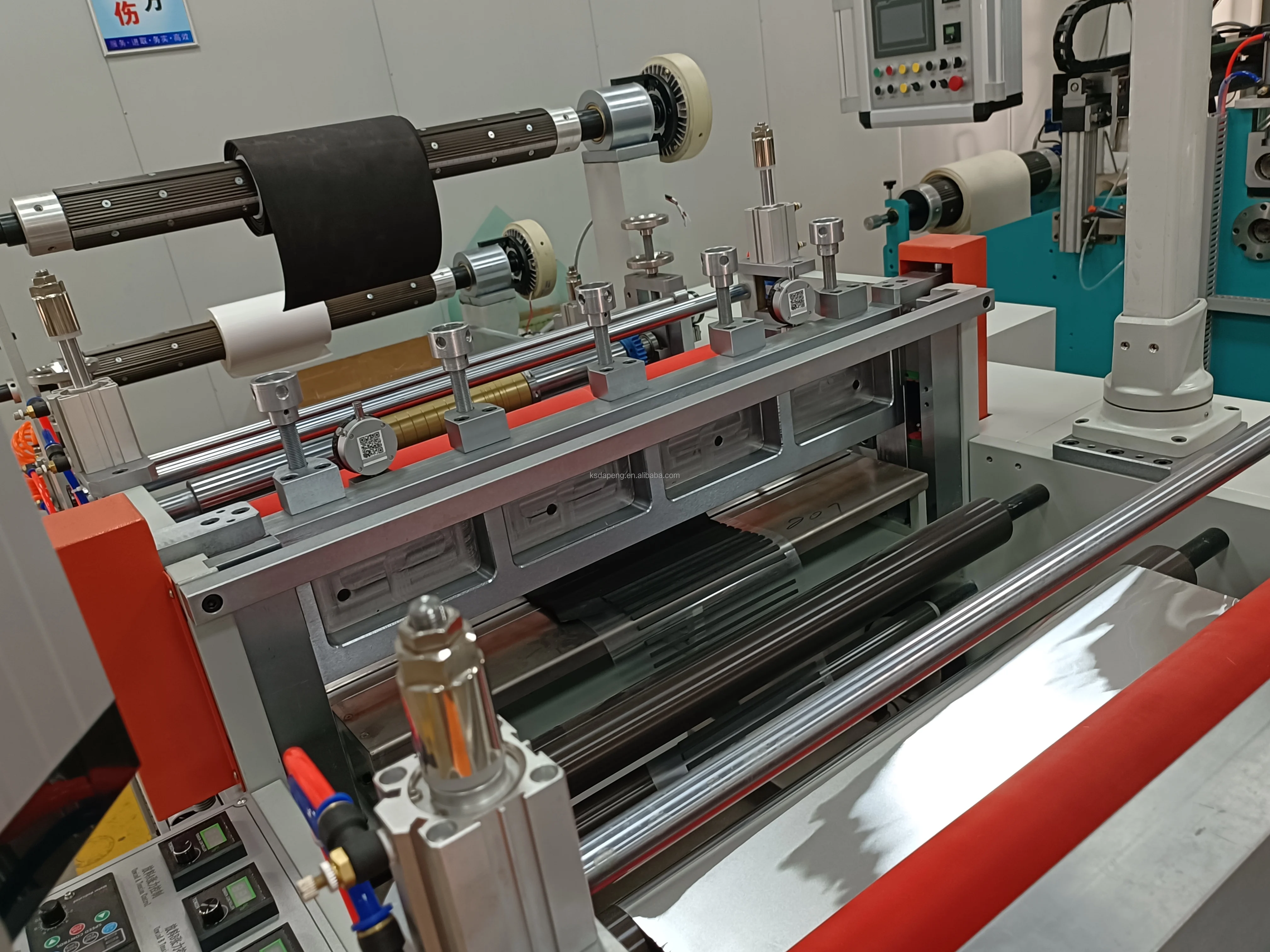 This machine employs programmable controller + man-machine touch screen + two servo controller to pull material, good synchronization, easy operation. This machine can do intermittent cutting and other six cutting methods: (1) Several intermittent kiss-cutting, +one through-cutting, (2) Several kiss-cutting + one through-cutting (3)kiss-cutting + rewinding (4)intermittent kiss-cutting +rewinding function, (5) Through-cutting (6) Intermittent through-cutting