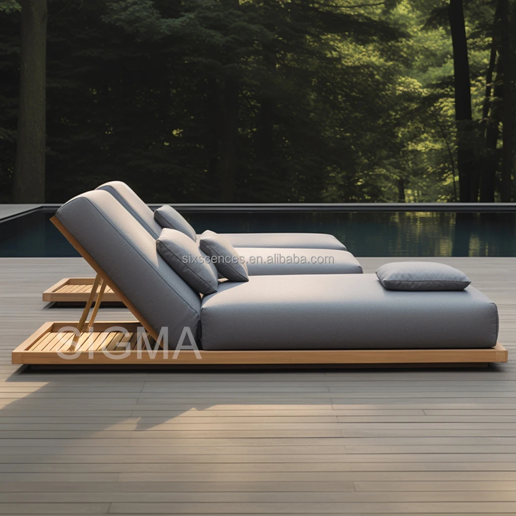 Adjustable Backrest Outdoor Teak Wooden Daybed Waterproof Cushion Foldable Patio Lounge Bed for Poolside Garden