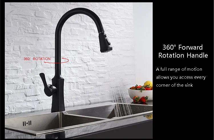 American Deck Mounted 3 Function Swivel Spray Head Black Basin Sink Mixer Kitchen Faucet