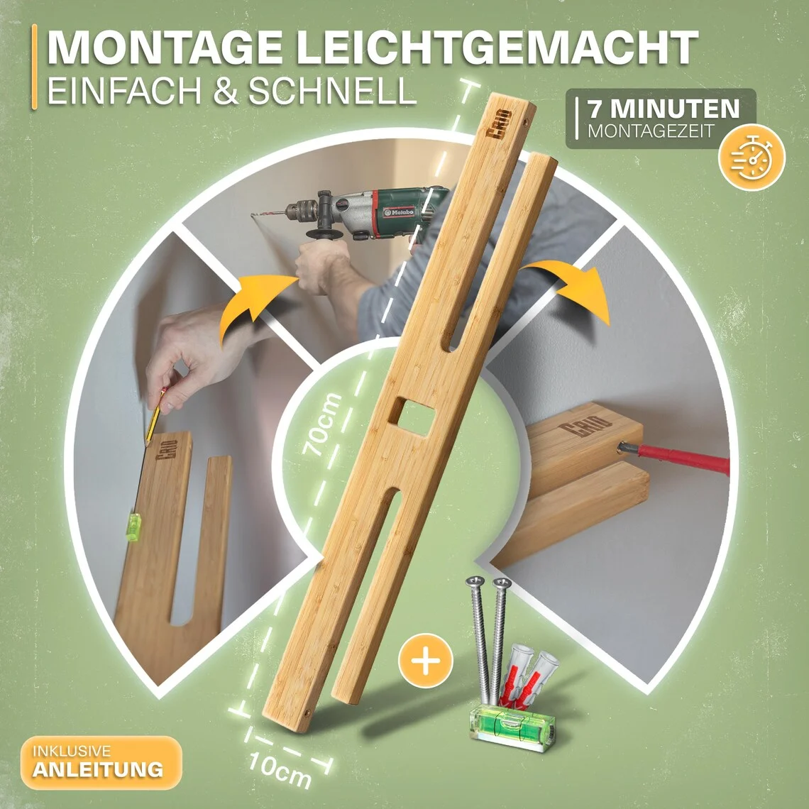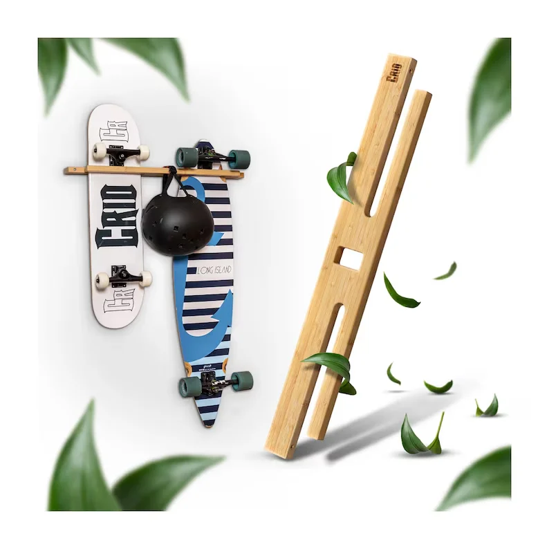 \uD83C\uDF31 ENVIRONMENTALLY FRIENDLY & STABLE: Made from 100% sustainable bamboo, our double longboard mount for the wall is not only environmentally friendly, but also particularly robust and of high quality.