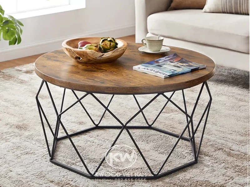 Bàn cafe gỗ tròn khung kim loại màu đen – BCF97