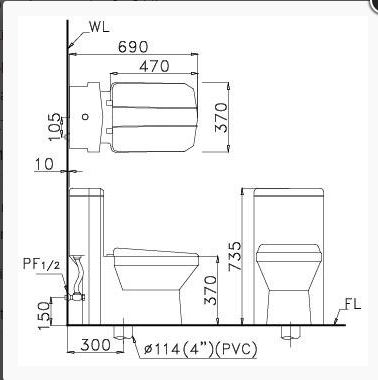 - Áp lực nước :0.7-5 kgf/cm² (0.07-0.5MPa)