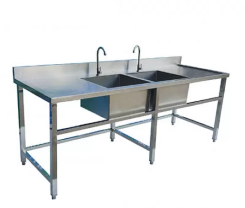 Bàn chậu rửa inox công nghiệp 2 hố có bàn bên TBV