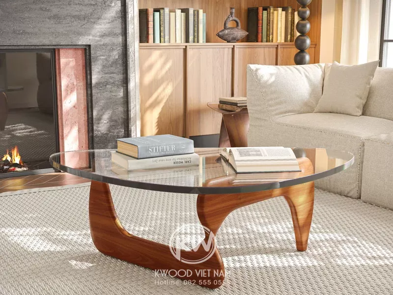 Bàn trà kính cường lực chân gỗ chắc chắn – BT249