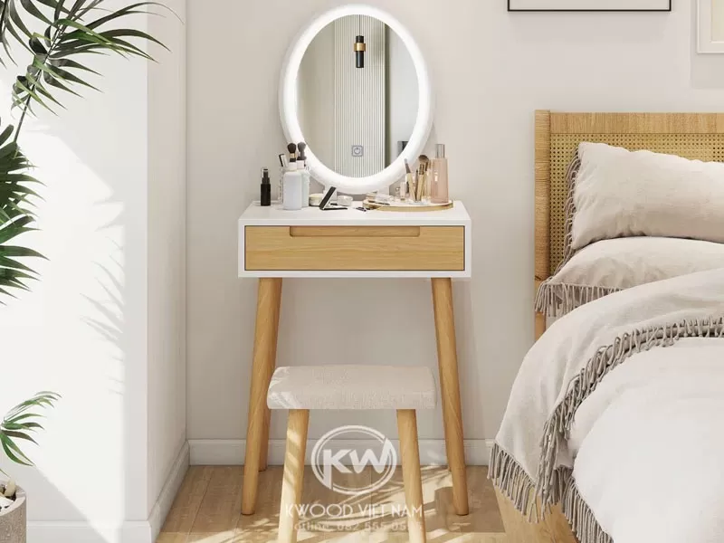 Sản phẩm bàn trang điểm thông minh khung gỗ chắc chắn - BTB081 tại Kwood Việt Nam với thiết kế nhỏ gọn phù hợp cho không gian phùng ngủ vừa và nhỏ.