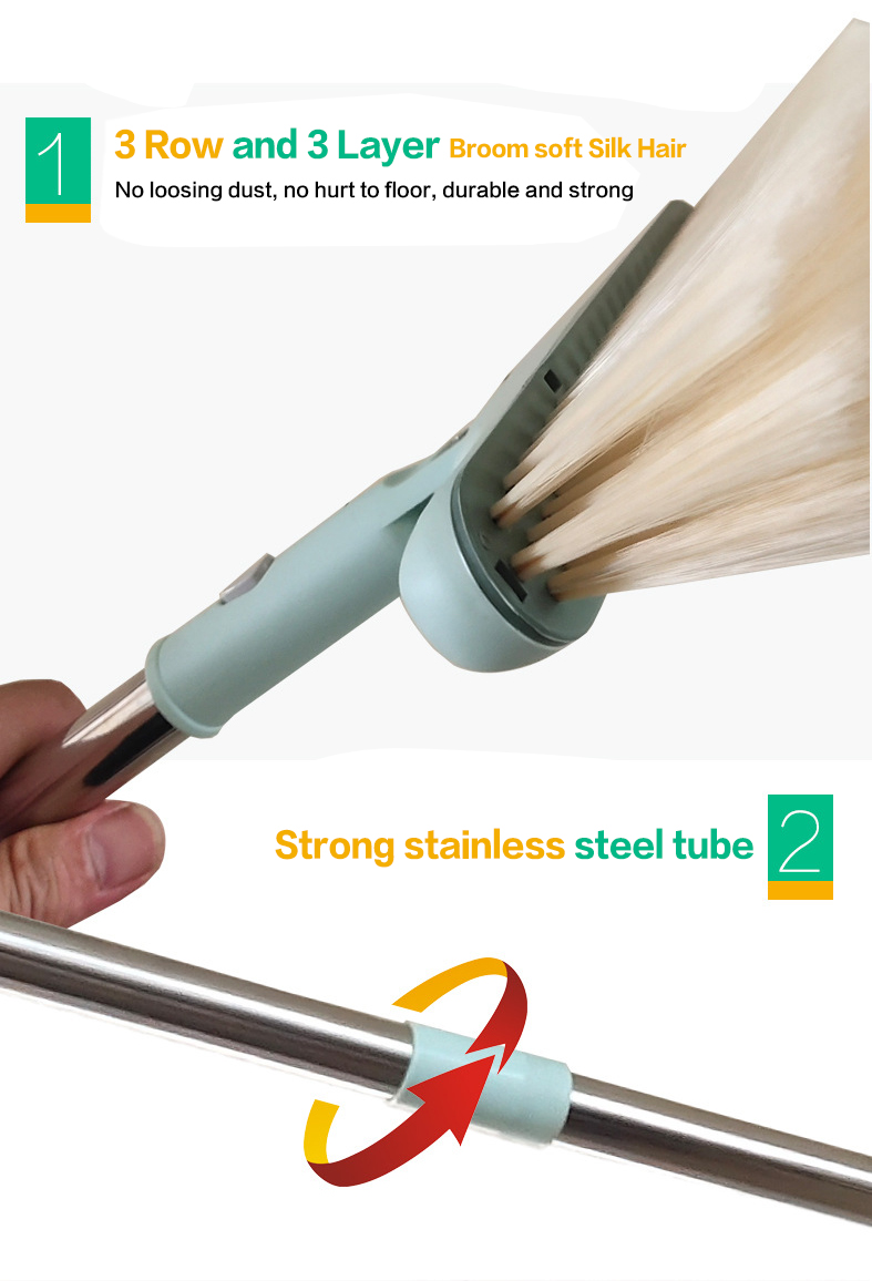 BENHENG Factory Supply 3 in 1 Magic Sweeping Broom and Dustpan Set With Long Handle