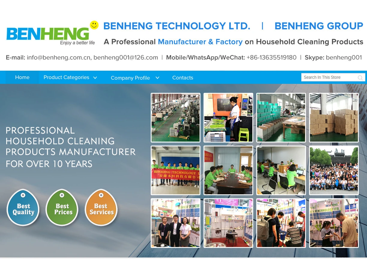 BENHENG TECHNOLOGY LTD. is a member of BENHENG GROUP which is a Professional Manufacturer and Factory on household products, especially on cleaning products including Mop, Broom, Brushes, Window Wiper, Kitchen Items, Storage items, Vacuum Cleaner etc.