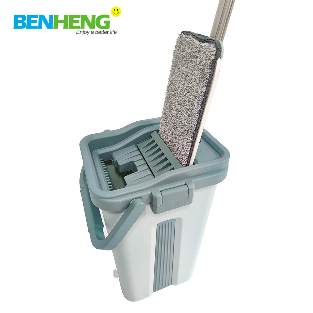 BENHENG BSCI Factory Flat Mop Bucket Set Super Absorment Microfiber Mop With Handsfree Bucket Lazy Magic Mop ISO9001 Factory