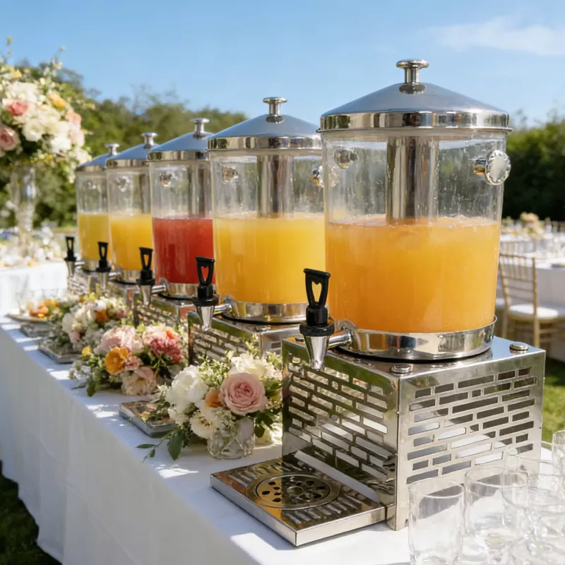Bình phân phối nước ép tiệc cưới là một vật dụng không thể thiếu để tạo nên một buổi tiệc cưới hoàn hảo và đáng nhớ. Với thiết kế sang trọng và tinh tế, bình phân phối này không chỉ là một công cụ hữu ích mà còn là một phần trang trí tuyệt đẹp, góp phần làm tăng thêm vẻ đẹp cho không gian tiệc cưới của bạn.