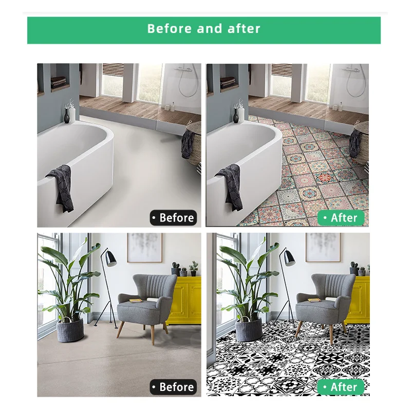 Miếng dán được đóng gói trong túi opp tiện lợi và cực kỳ dễ sử dụng. Chỉ cần bóc lớp giấy bảo vệ phía sau và dán trực tiếp lên sàn, bạn đã có một bề mặt mới đầy sáng tạo mà không cần đến bất kỳ công cụ nào. Đặc biệt, miếng dán có thể tháo ra và dán lại mà không để lại keo dính, giúp bạn dễ dàng điều chỉnh hoặc thay đổi khi cần thiết.