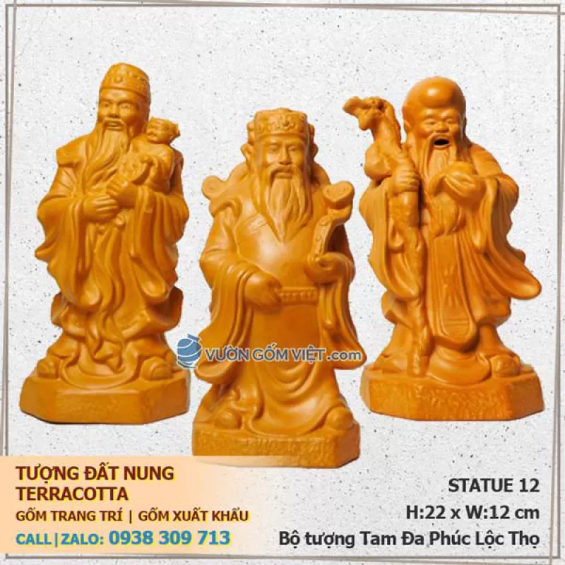 Bộ 3 tượng Tam Đa Phúc Lộc Thọ 12 gốm đất nung trang trí Terracotta