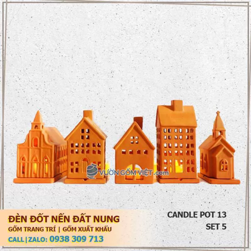 Bộ 5 đèn nến ngôi nhà 13 Đèn đốt nến trang trí Terracotta