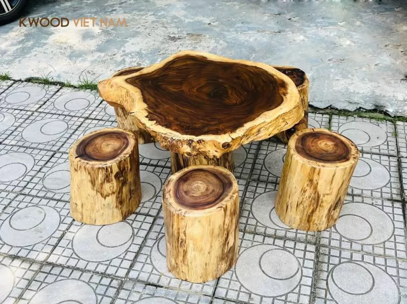 Được thiết kế theo phong cách Rustic, bộ bàn trà gỗ me tây ghế đôn - BMT036 gây ấn tượng với vẻ đẹp độc đáo.